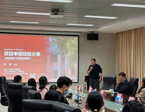 为进一步做好2025年度国家自然科学基金项目申报工作,提高教师的科研项目申报质量和水平,12月27日,公司邀请中山大学材料化工研究所所长牛利教授就项目申请作经验交流报告。公司经理王际辉,副经理闫景坤,学科领军人才尚禹教授、刘亚青教授以及30余名专任教师及博士后参与交流。