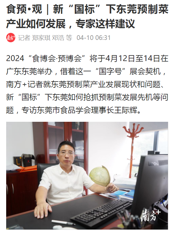 哈哈体育作为东莞市食品产业重要的人才培养单位以及科研攻关单位,积极参与到本次展会中,为大湾区食品产业高质量发展助力。展会期间,“南方+”专程采访了哈哈体育经理、东莞市食品学会理事长王际辉教授。王际辉表示,“前一阶段社会上对预制菜产业存在不同声音,部分预制菜产品存在质量问题,其根源是缺乏相关规范。近日市场监管总局联合教育部、工业和信息化部、农业农村部、商务部、国家卫生健康委印发《关于加强预制菜食品安全监管 促进产业高质量发展的通知》,首次在国家层面明确预制菜范围,对预制菜原辅料、预加工工艺等进行界定。这一文件的出台非常及时,十分必要,是对我国预制菜产业创新发展的重大利好。随着我国预制菜产业标准体系的不断完善,预制菜产业将进入新的发展阶段,我们共同期待更多的、更健康的预制菜产品涌现,满足消费者的需求。”