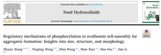 2024年7月16日,公司王际辉教授团队于国际食品顶级期刊《Food Hydrocolloids》在线发表题为“Regulatory mechanisms of phosphorylation in ovalbumin self-assembly for aggregates formation: Insights into size, structure, and morphology”的研究性文章。论文第一作者为熊舟翼特聘副研究员,通讯作者为新加坡国立大学食品科学与技术系助理教授LI Dan。