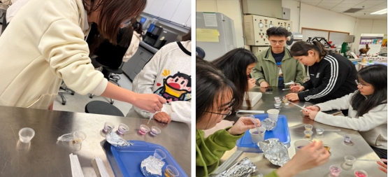 随后,同学们与香港理工大学食品科学及营养学系的员工们一起上了一堂食品感官评定和食品工艺学实验课。通过精彩的课程讲解和精心设计的实验环节,同学们掌握了食品感官评定实验操作的基本步骤和原理,了解了理论与实践相结合的重要性,更直观感受了食品科学的乐趣。