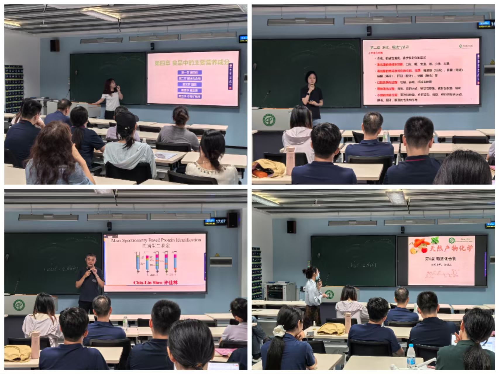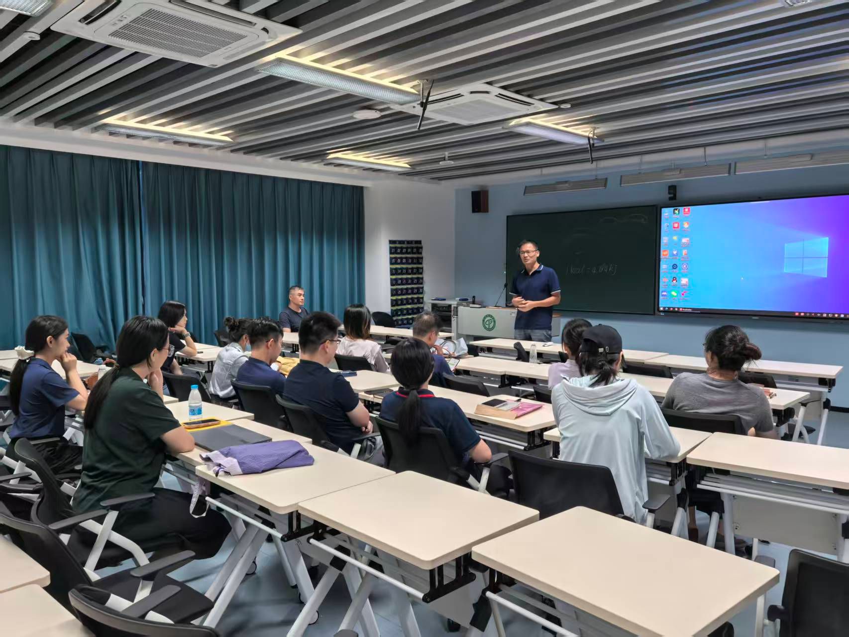 试讲环节中,熊舟翼、刘梦、许佳林和金明玉四位教师依次登台授课。熊舟翼老师聚焦食品营养话题,将复杂的专业概念转化为通俗易懂的生活常识,引导大家思考日常膳食摄入问题;刘梦老师则围绕能量摄入与消耗,通过设置层层递进的问题链,构建逻辑严谨的知识框架,帮助听众快速掌握重点内容;许佳林老师在授课时注重理论与实践的融合,详细讲解了相关实验操作步骤,强调操作规范与安全要点,展现出较强的实践教学能力;金明玉老师在课堂中充分关注“员工视角”,主动拉近与台下听众的距离,有效调动了现场的参与积极性。四位老师凭借扎实的专业知识储备与精心的课前准备,呈现了四节风格各异却同样精彩的教学课堂。
