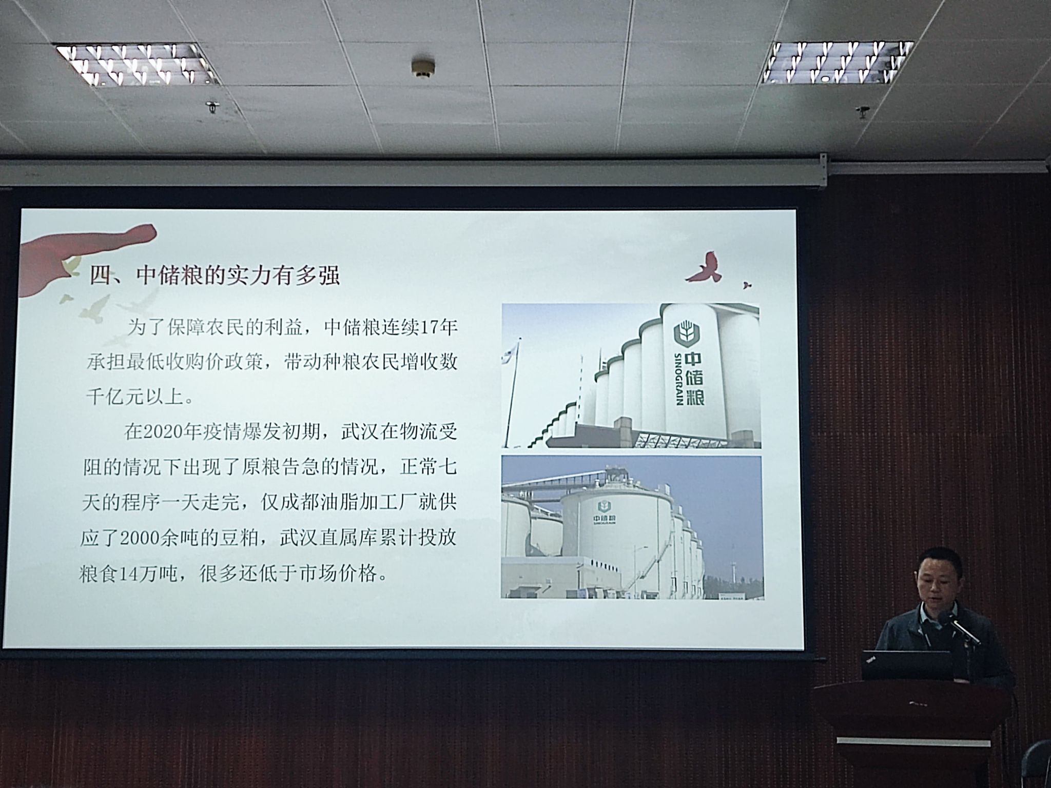 图4 中储粮张乐经理讲解维护国家粮食安全的战略意义