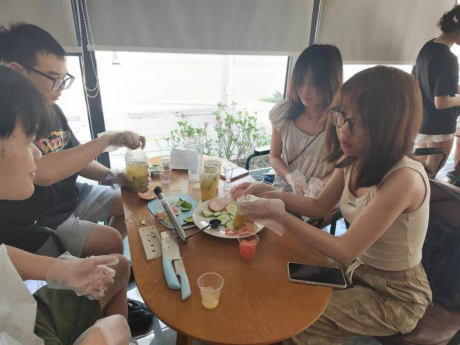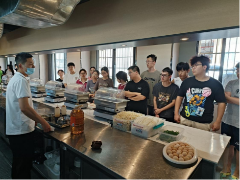 除讲座和学术报告外,本次实习还安排了烹饪与食品加工实操环节。8月1日下午,一场别开生面的食品制作实训在常品公司餐厅如火如荼开展。同学们亲自动手,体验了炒河粉、饺子、手打柠檬茶和杨枝甘露的制作过程,还相互品尝了不同组别的成品。实操活动不仅锻炼了同学们的动手能力,也增强了团队协作精神,为实习活动增添了乐趣。