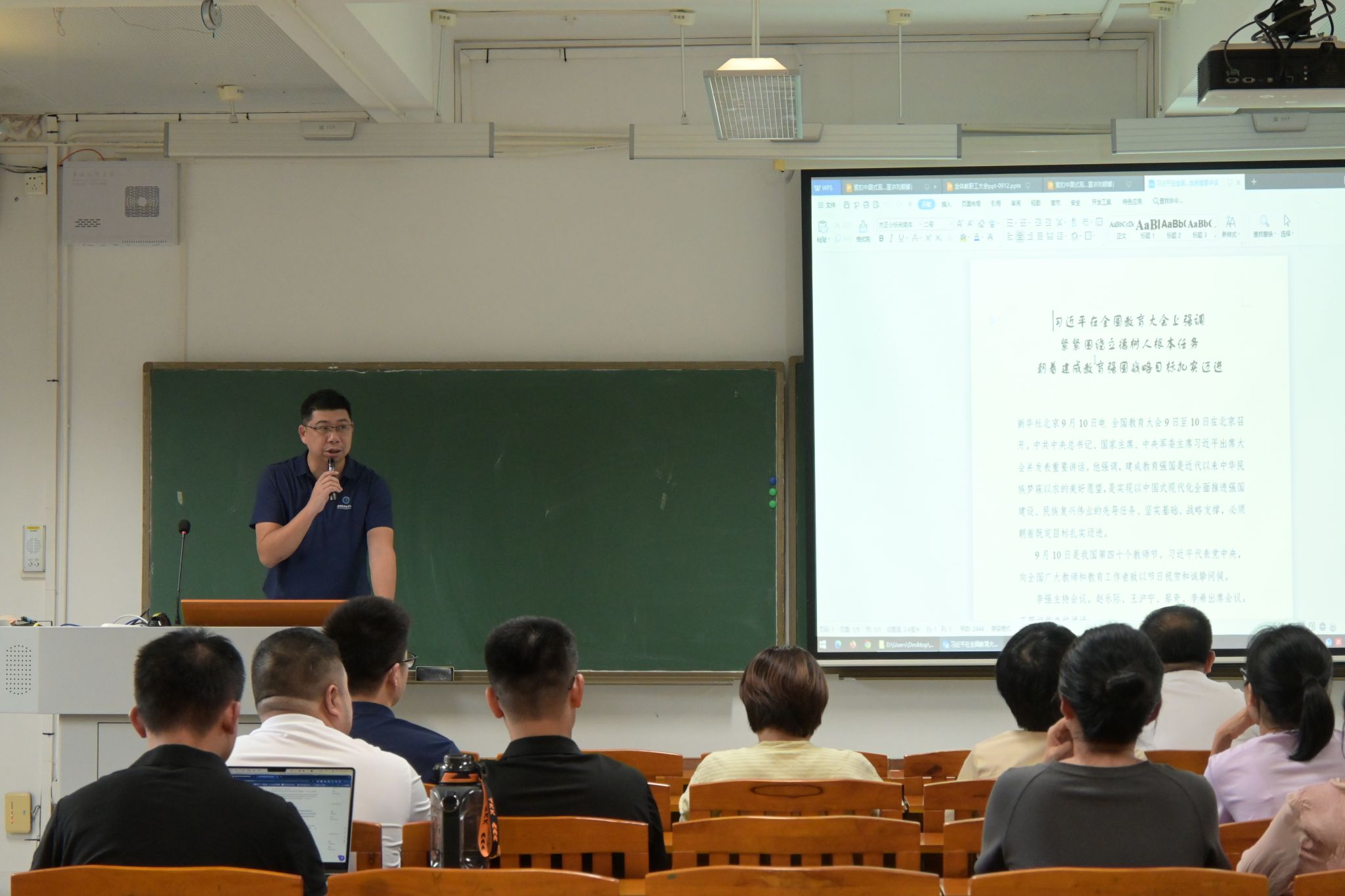 会上,公司党委书记谢炯标首先带领全体教职工共同学习了习近平总书记在全国教育大会上的重要讲话精神,并强调了师德师风建设在教育工作中的重要性。他指出,全院教职工应大力弘扬教育家精神,牢记为党育人、为国育才的初心使命,紧紧围绕立德树人根本任务,落实好师德师风第一标准,争做“四有”好老师,努力成为“大先生”,以身作则树立良好师德形象,始终坚持用党的创新理论铸魂育人。他要求,全院教职工主动关注员工学习生活,加强师生互动,及时了解员工的需求和困难,从而提供更有针对性的帮助和支持,为培养高素质应用型创新人才作出更大贡献。